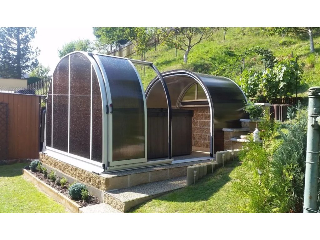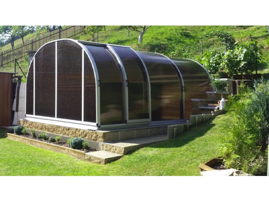Díky svému tvaru je toto zastřešení vyráběno za účelem využití prostoru mimo bazén. Poskytuje uživatelům prostor pro odložení věcí či pobyt pod zastřešením. Často je využíváno v kombinaci s jinými typy než atypické zastřešení. Toto zastřešení vyrábíme v rozsahu šířky 350 – 450 cm.