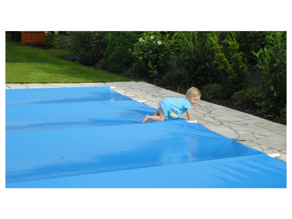 Bezpečnostní plachta na bazén je ideálním řešením celoročního zakrytí bazénu. Kromě požadavku na bezpečnost plní i funkci tepelné izolace a ochrany před padajícími nečistotami. Plachta je vyztužena hliníkovými nosnými trubkami, leží na okrajích bazénu a ukotvením do dlažby je navíc zajištěna proti posunu. Vysoké pevnosti plachty je dosaženo použitím vnitřní zpevňující struktury. Celoroční bezpečnostní bazénová plachta je vhodná pro zapuštěné, částečně zapuštěné a nadzemní obezděné bazény všech tvarů a typů. Na rozdíl od bazénového zastřešení, nenarušuje vzhled zahrady a z finančního hlediska je její nespornou výhodou třetinová cena oproti bazénovému zastřešení či lamelovému zakrytí.