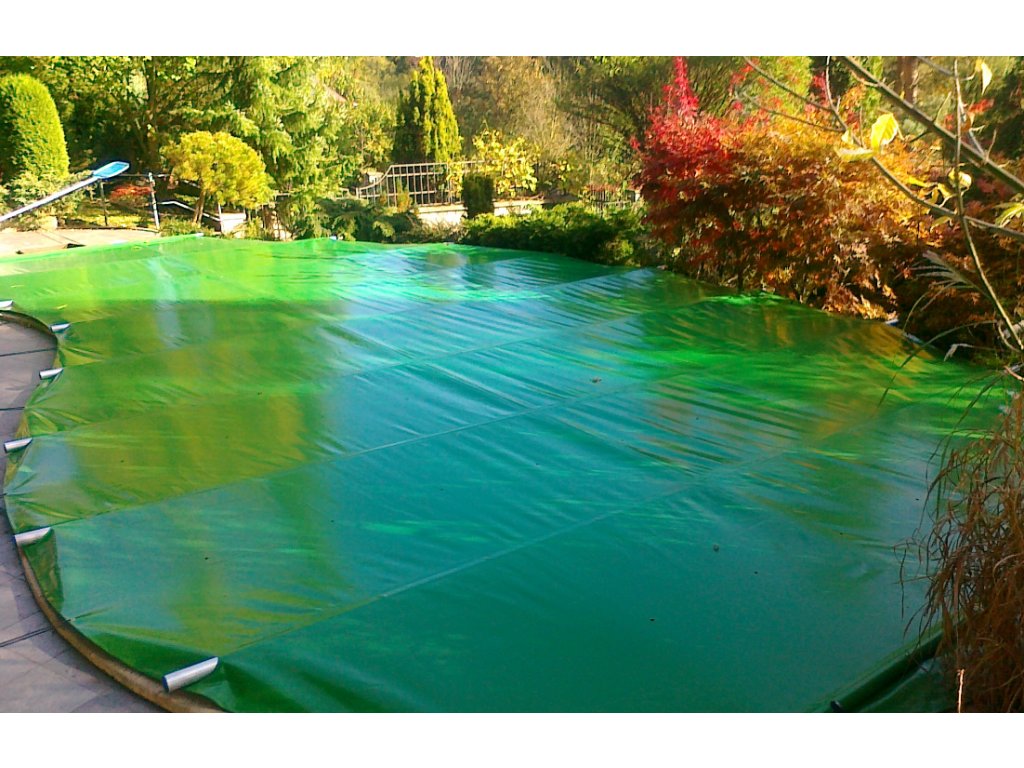 Bezpečnostní plachta na bazén je ideálním řešením celoročního zakrytí bazénu. Kromě požadavku na bezpečnost plní i funkci tepelné izolace a ochrany před padajícími nečistotami. Plachta je vyztužena hliníkovými nosnými trubkami, leží na okrajích bazénu a ukotvením do dlažby je navíc zajištěna proti posunu. Vysoké pevnosti plachty je dosaženo použitím vnitřní zpevňující struktury. Celoroční bezpečnostní bazénová plachta je vhodná pro zapuštěné, částečně zapuštěné a nadzemní obezděné bazény všech tvarů a typů. Na rozdíl od bazénového zastřešení, nenarušuje vzhled zahrady a z finančního hlediska je její nespornou výhodou třetinová cena oproti bazénovému zastřešení či lamelovému zakrytí.