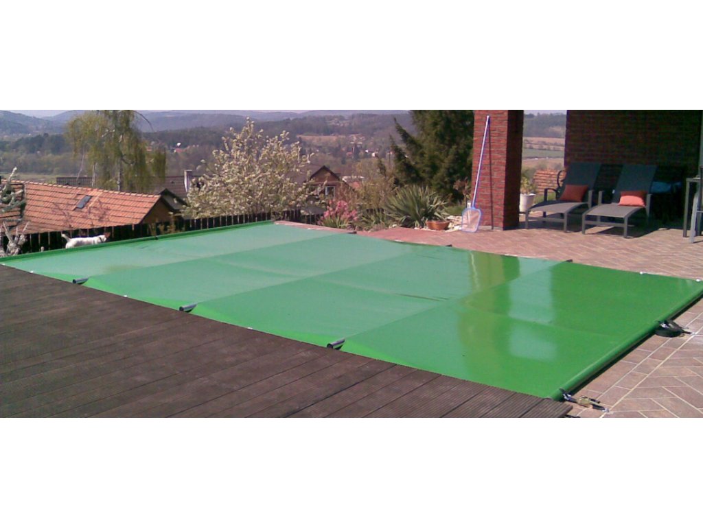 Bezpečnostní plachta na bazén je ideálním řešením celoročního zakrytí bazénu. Kromě požadavku na bezpečnost plní i funkci tepelné izolace a ochrany před padajícími nečistotami. Plachta je vyztužena hliníkovými nosnými trubkami, leží na okrajích bazénu a ukotvením do dlažby je navíc zajištěna proti posunu. Vysoké pevnosti plachty je dosaženo použitím vnitřní zpevňující struktury. Celoroční bezpečnostní bazénová plachta je vhodná pro zapuštěné, částečně zapuštěné a nadzemní obezděné bazény všech tvarů a typů. Na rozdíl od bazénového zastřešení, nenarušuje vzhled zahrady a z finančního hlediska je její nespornou výhodou třetinová cena oproti bazénovému zastřešení či lamelovému zakrytí.