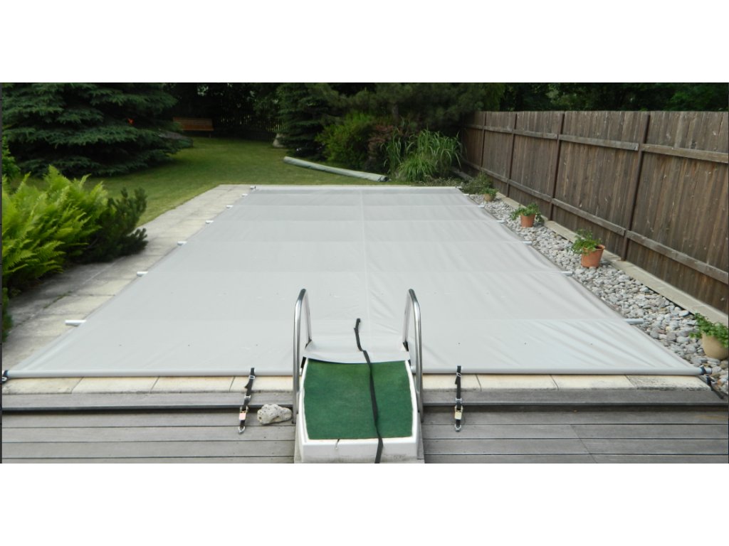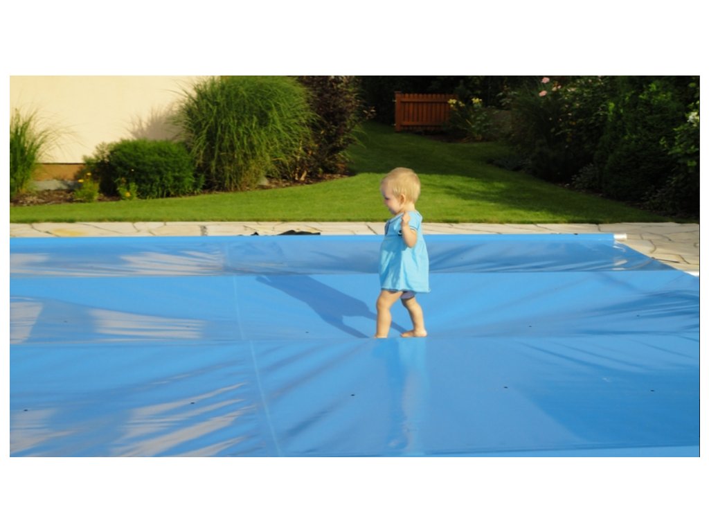 Bezpečnostní plachta na bazén je ideálním řešením celoročního zakrytí bazénu. Kromě požadavku na bezpečnost plní i funkci tepelné izolace a ochrany před padajícími nečistotami. Plachta je vyztužena hliníkovými nosnými trubkami, leží na okrajích bazénu a ukotvením do dlažby je navíc zajištěna proti posunu. Vysoké pevnosti plachty je dosaženo použitím vnitřní zpevňující struktury. Celoroční bezpečnostní bazénová plachta je vhodná pro zapuštěné, částečně zapuštěné a nadzemní obezděné bazény všech tvarů a typů. Na rozdíl od bazénového zastřešení, nenarušuje vzhled zahrady a z finančního hlediska je její nespornou výhodou třetinová cena oproti bazénovému zastřešení či lamelovému zakrytí.