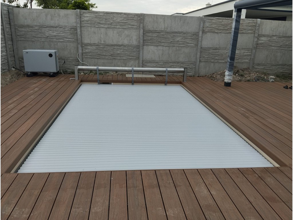 Lamelové zakrytí hladiny bazénu bez krytu.