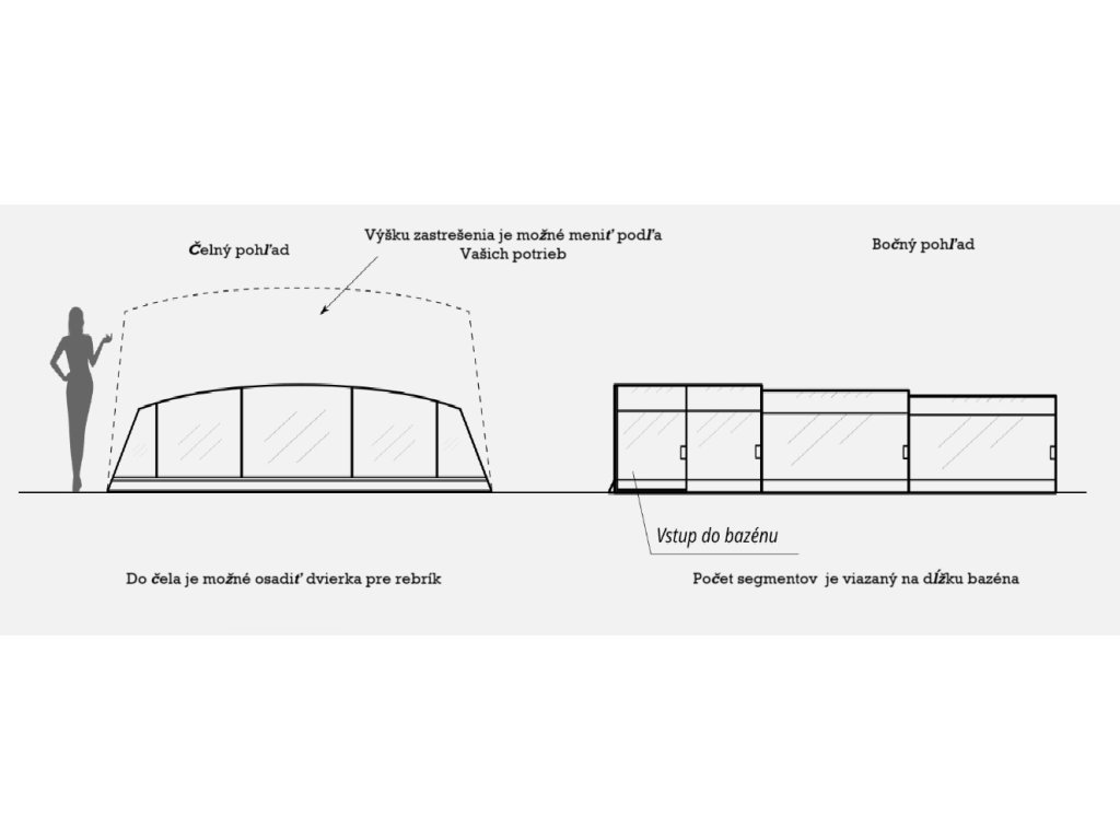 Elegantní zastřešení s výškou, kterou můžeme přizpůsobit vašim představám. Nízké provedení nenarušuje výhled po Vaší zahradě. Nastavitelnost výšky je provedení, které je pak možno využít i jako zastřešení pod kterým se vytvoří posezení. Tento typ lze použít v kombinaci s jiným než atypické zastřešení.