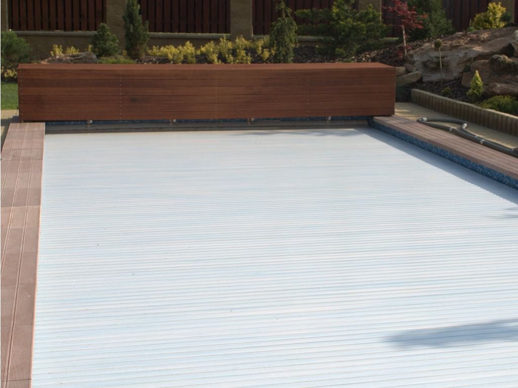 Vďaka priehľadným solárnym lamelám si ľudia môžu užívať svetlá v bazéne. Solárne transparentné lamely dodávajú modernejší nádych a dotvárajú design bazénu., koncovky barva lamely