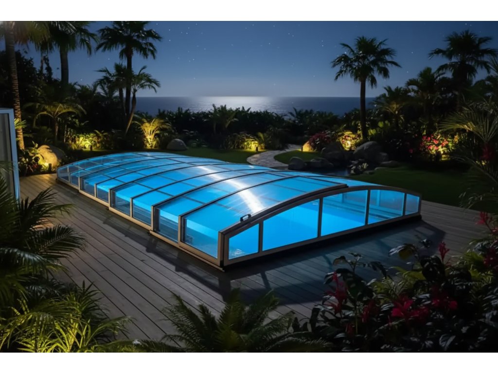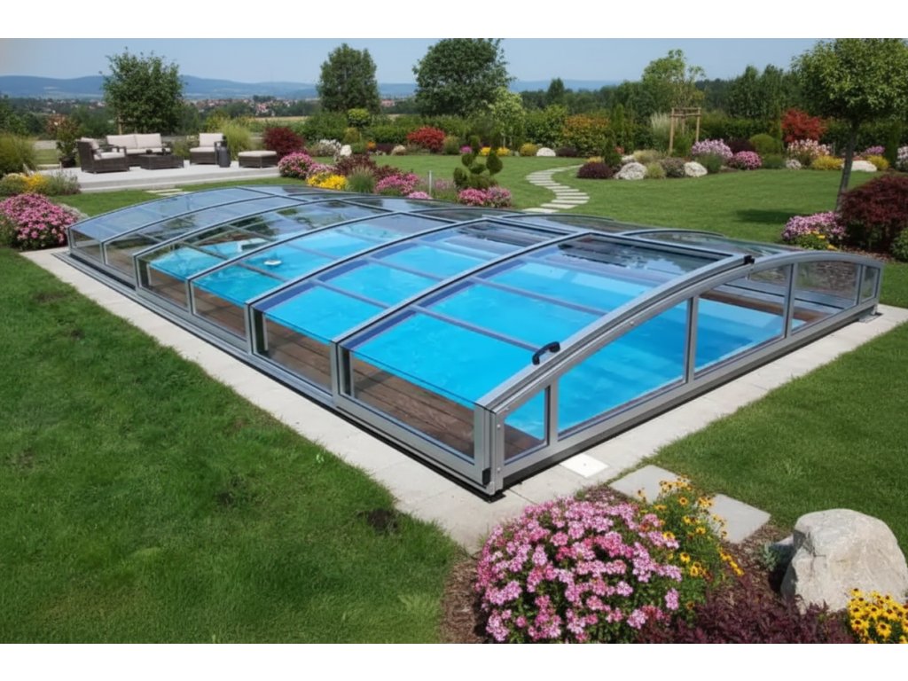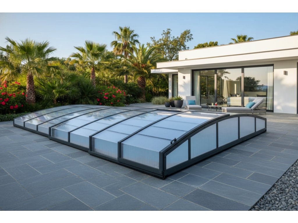 Zastrešenie bazéna ZETA1 je moderné a funkčné riešenie, ktoré chráni váš bazén pred nečistotami a nepriaznivým počasím. Je vyrobené z kvalitných materiálov s pevnou konštrukciou a priehľadným polykarbonátovým zasklením, ktoré umožňuje maximálny slnečný prestup. Zastrešenie bazéna Zeta1 ponúka jednoduchú manipuláciu a flexibilitu pri otvorení alebo zatvorení, čo zaisťuje pohodlie a bezpečnosť užívateľov. Ideálna voľba na predĺženie kúpacej sezóny a ochranu bazéna pred nepriaznivými vplyvmi.